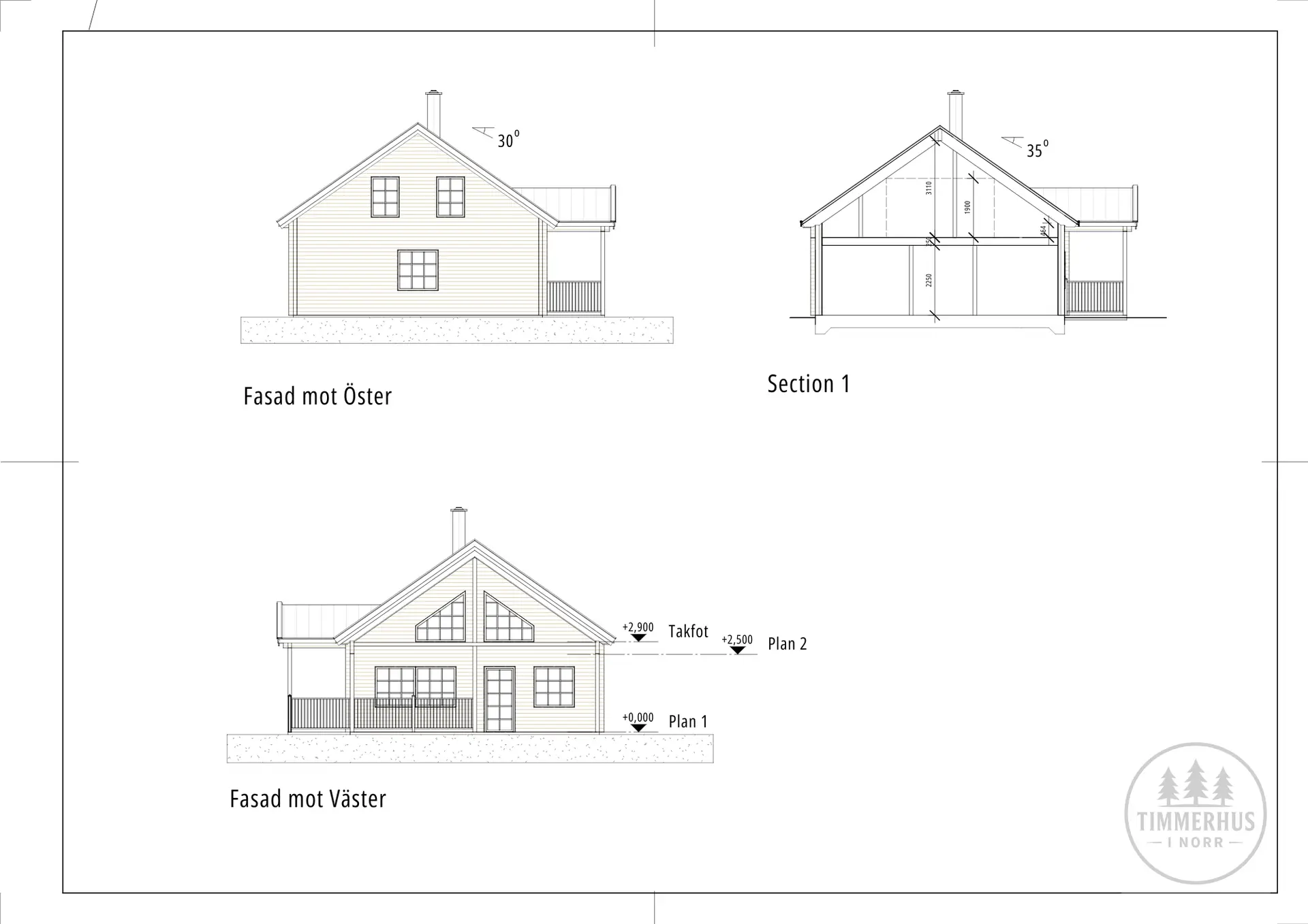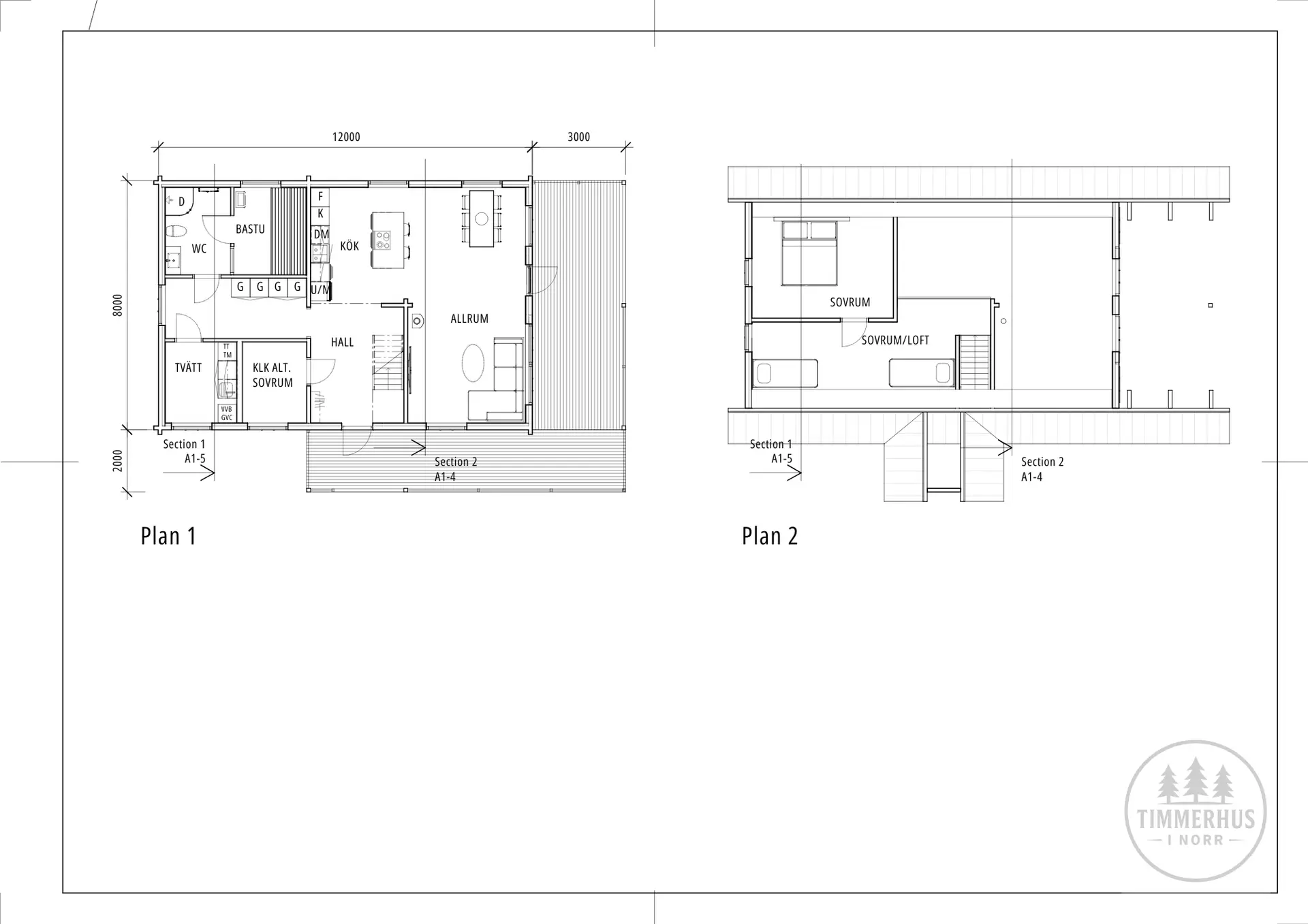 Detta timmerhus erbjuder en ljus och inbjudande öppen planlösning med gott om utrymme för både avkoppling och samvaro. På den mysiga loftvåningen finns plats för sovrum eller extra förvaring – vilket frigör yta på entréplanet för lyxiga tillval som bastu eller klädkammare i anslutning till hallen. Husets smarta konstruktion, med endast en genomgående timmervägg och en centralt placerad innervägg i timmer, ger stor frihet att anpassa planlösningen efter egna önskemål och behov.